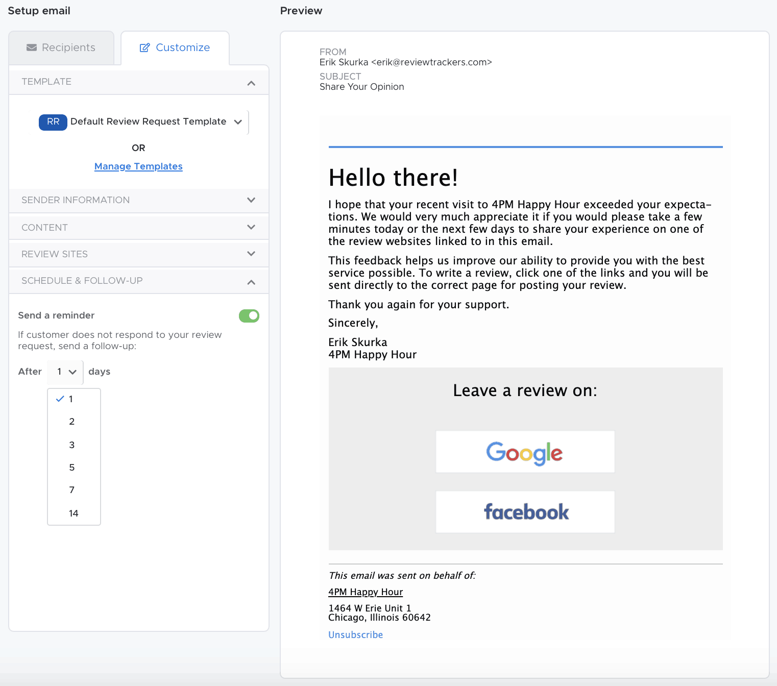 You can save even more time and easily build trust by automating your review request process with ReviewTrackers’ Drip Campaigns.