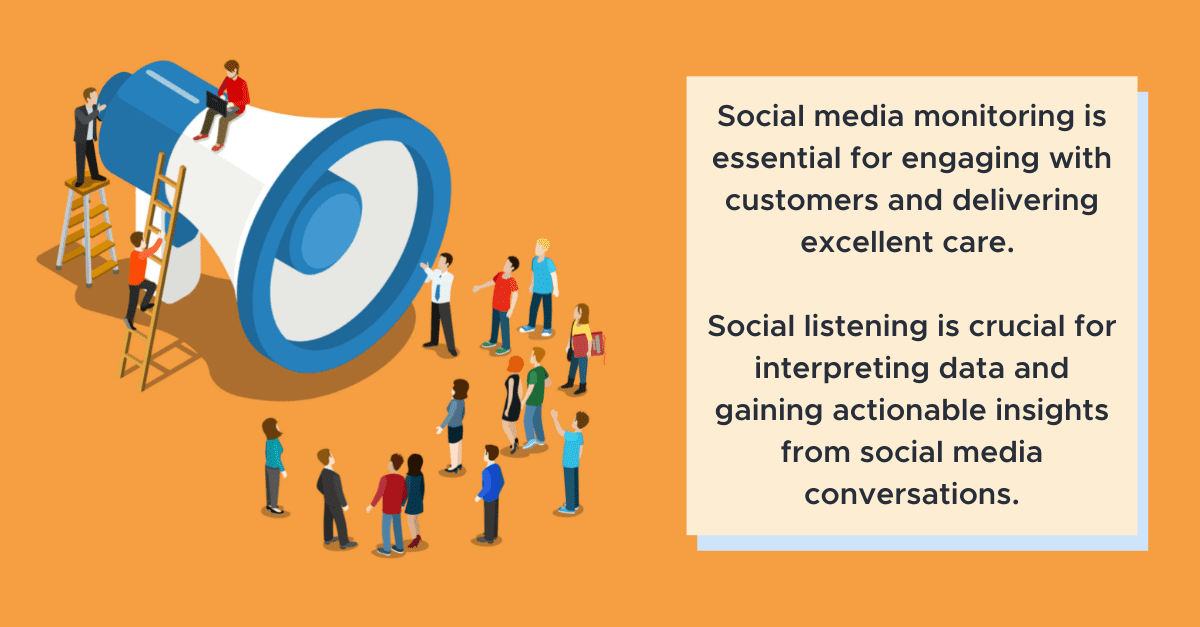 Social media monitoring is essential for engaging with customers and delivering excellent service and care, while social listening is crucial for interpreting data and gaining actionable insights from social media conversations.