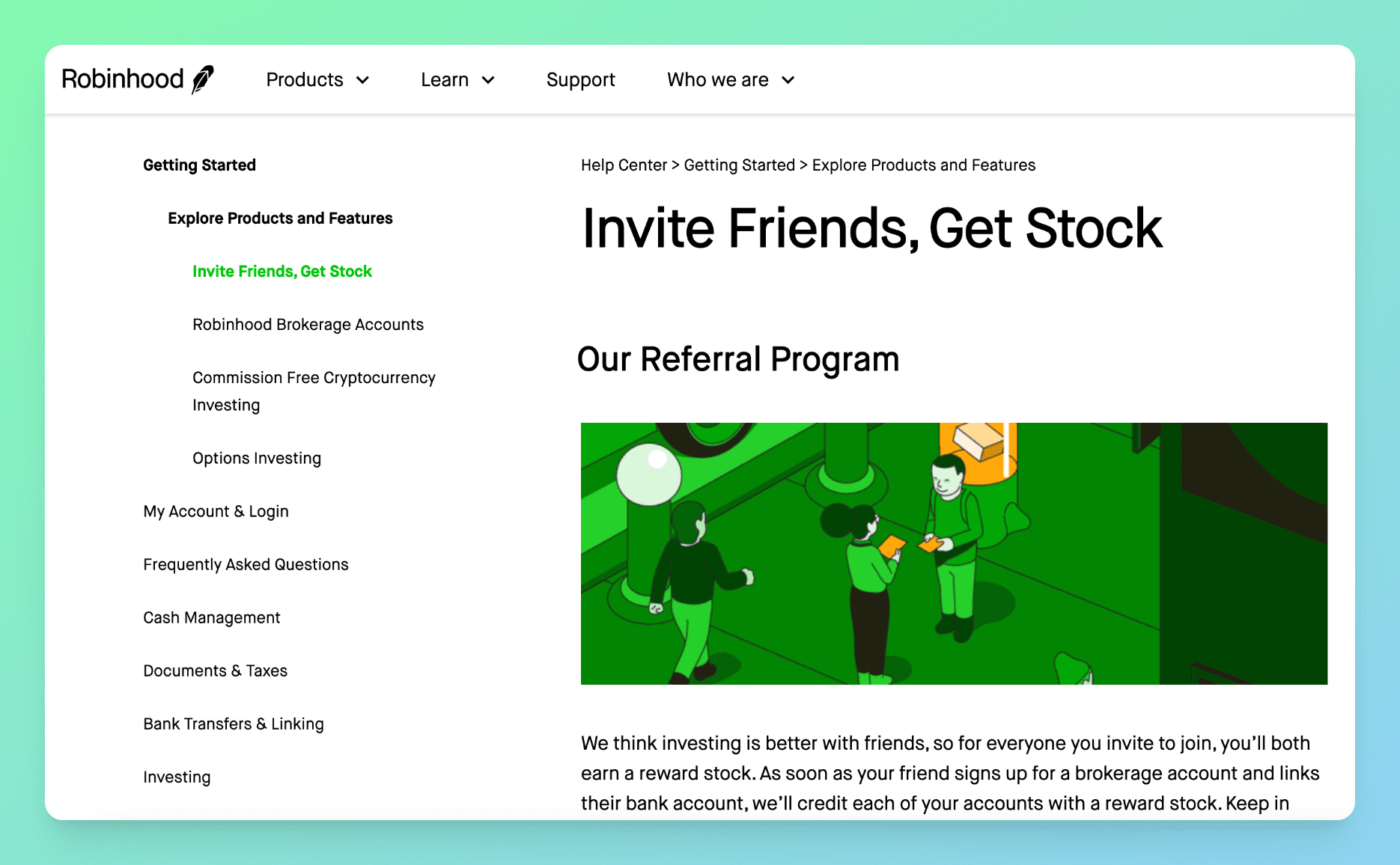 A great example of how referral programs can drive word of mouth for a company is by Robinhood, the popular trade and investing app. Pre-launch, through its referral program, Robinhood was able to bring in more than a million people who signed up to the waitlist.