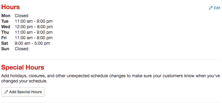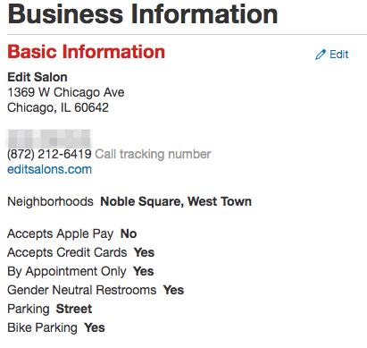 - Click on the “Edit” link on a Yelp page’s general information card.