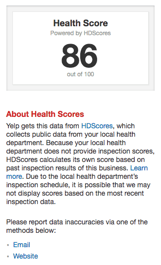 - Yelp Health Score