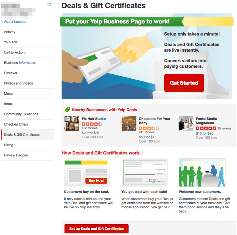 - Yelp Deals and Gift Certificates