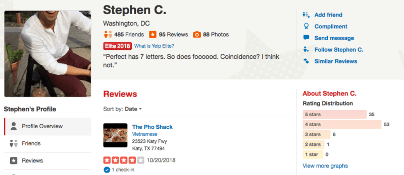 It’s unclear how Yelp sorts these reviews, but our observations seem to indicate that the internal algorithm utilizes multiple factors such as overall rating, if the review received votes, and when the review was posted. Being a Yelp Elite Squad member doesn’t seem to help in any way because the first page includes reviews from both regular and Elite users.