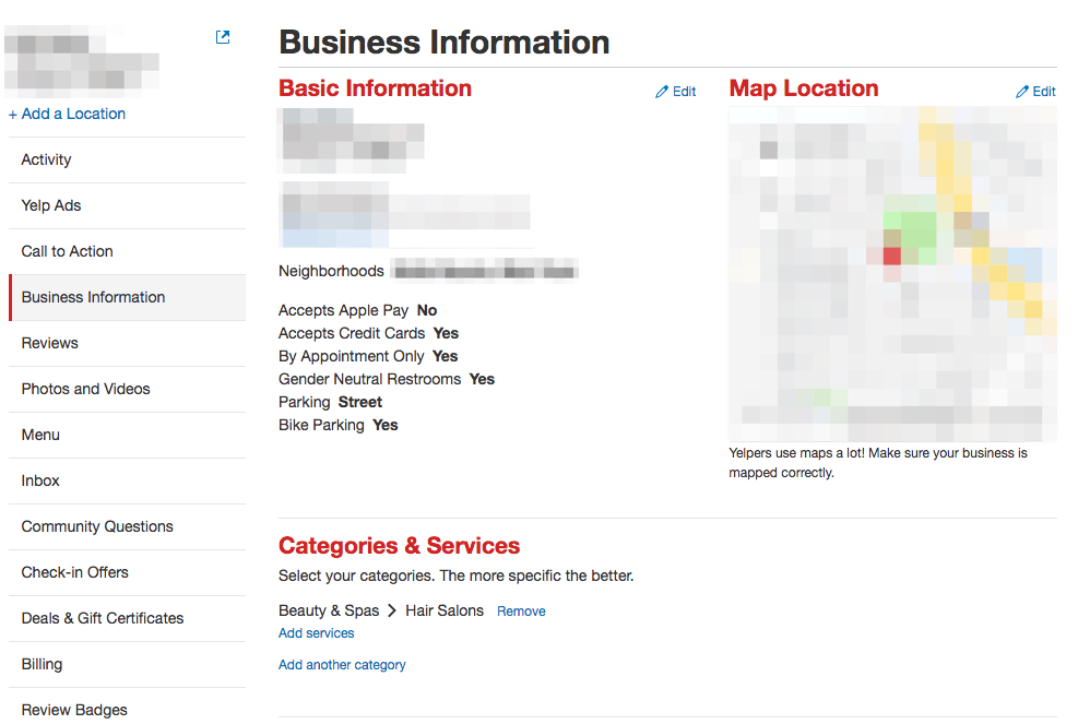 It isn’t enough to just define a business simply as a restaurant or in the automotive industry. Yelp says that categories should be as specific as possible and that they should “describe the primary activities of the business rather than the entire scope of the business’ activity.”