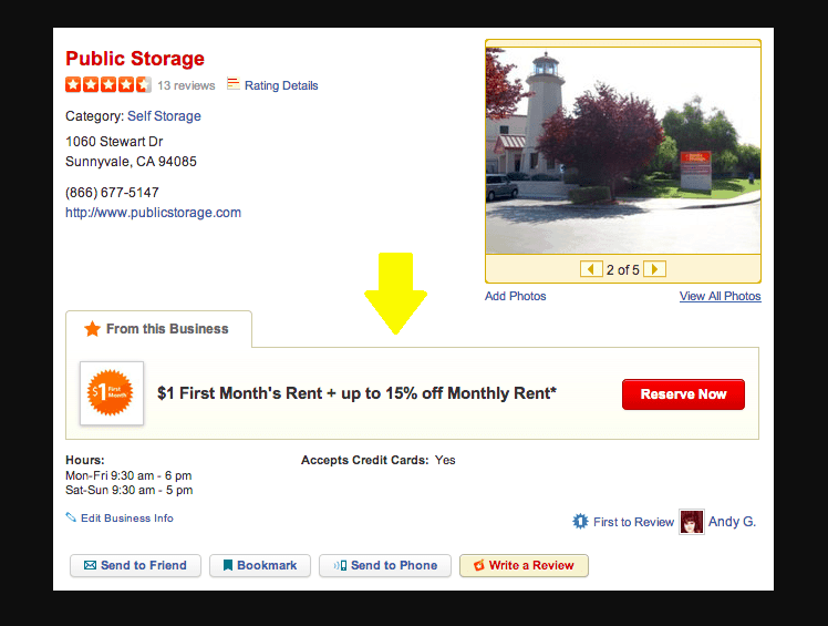 Yelp Ads includes multiple tools to help you create, monitor, and analyze the ads for your business page. Some of the features we previously mentioned – such as the Calls to Action buttons, Deals, and Gift Certificates – are all part of the Yelp Ads program.