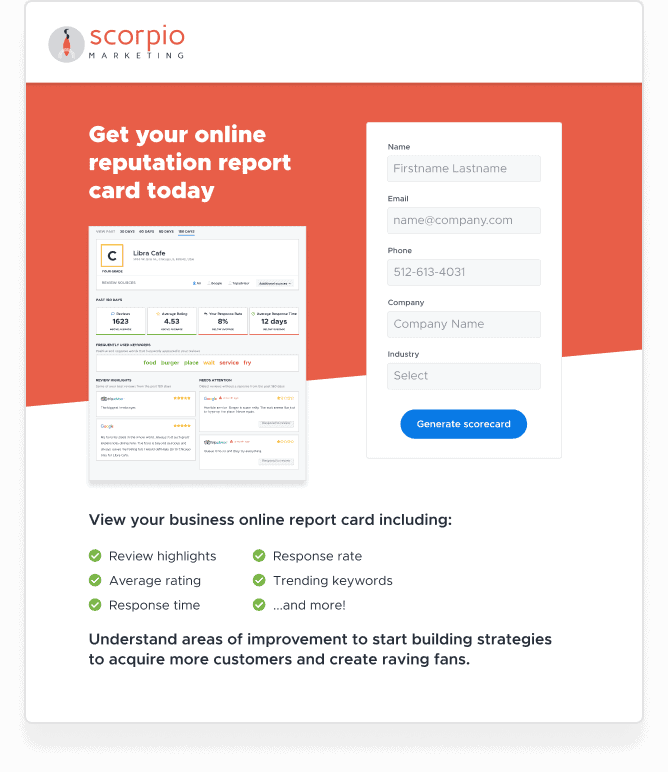 Generate more leads to your business through ReviewTrackers’ custom scorecard landing pages.