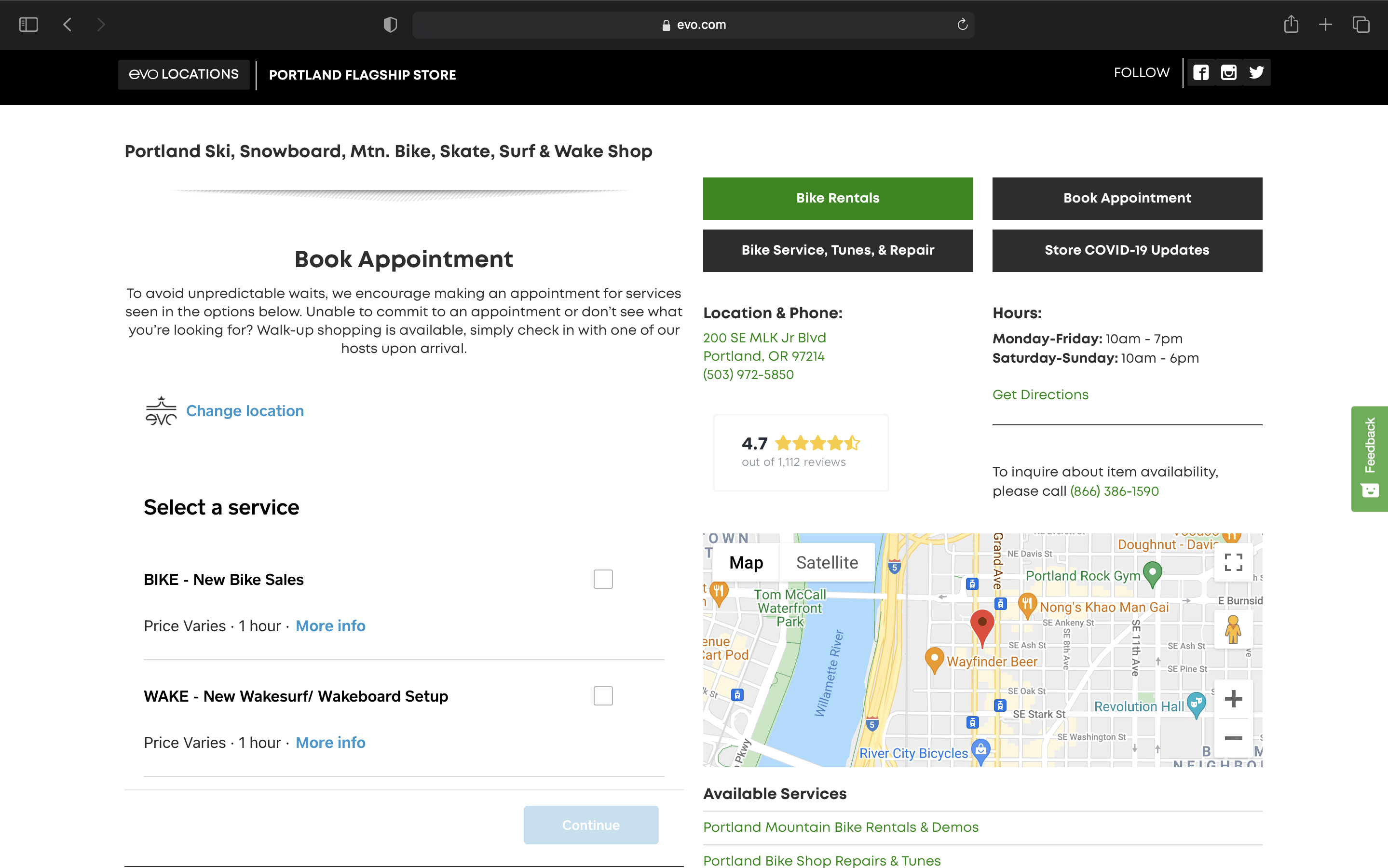 Here’s an example of what this looks like on evo’s Portland location page: