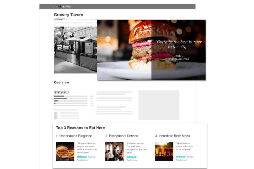 - Top 3 Reasons: This allows you to choose three aspects of your restaurant to highlight on your listing. The Top 3 Reasons section appears between Overview and your Tripadvisor reviews.