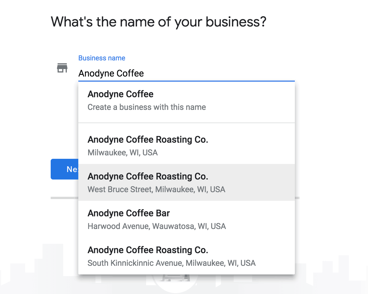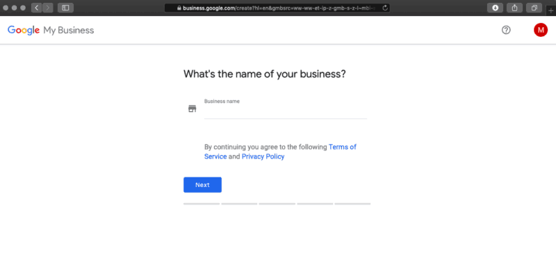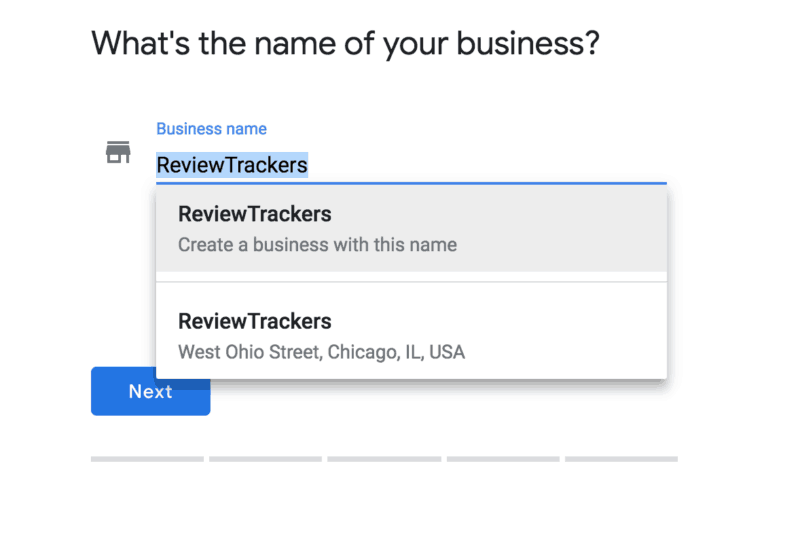 - Google will ask you for the name of your business. Type its name on the search bar and click on the correct name if it appears on the dropdown list.
