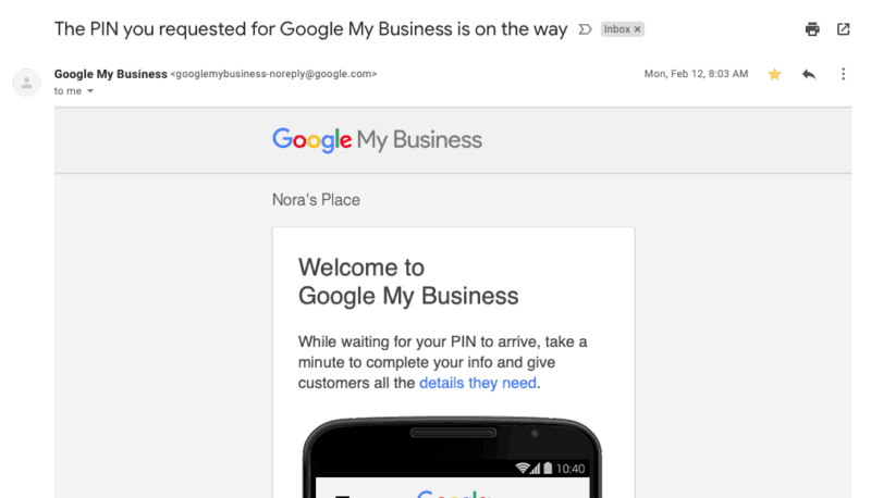 - You should see a message in your inbox that contains a code. You can enter that code in the GMB dashboard.