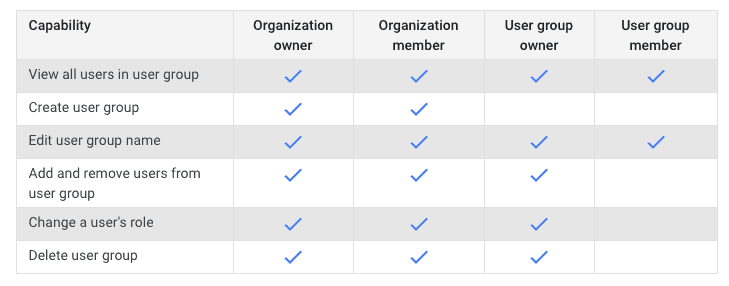 User groups let you create teams of people within your agency to manage specific locations or location groups in your Google My Business agency dashboard. By creating a user group, you’re grouping together people you want to have the same level of access to certain locations. Anyone in your organization can create a user group. You can add people to a user group as owners or members. Here’s a summary of the different capabilities of each role: