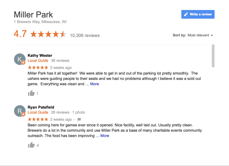 Google Local Guides is a global community of the top reviewers on Google. Think of it as Google’s version of Yelp Elite. The more reviews a user writes and posts on Google, the more benefits he or she enjoys. If you get a review from a Google Local Guide, it’s more likely to show up at the top of your reviews when a user clicks on your GMB listing. That may be because Google gives special preference to Google Local Guide reviews, or simply because these reviews tend to be longer and include photos.